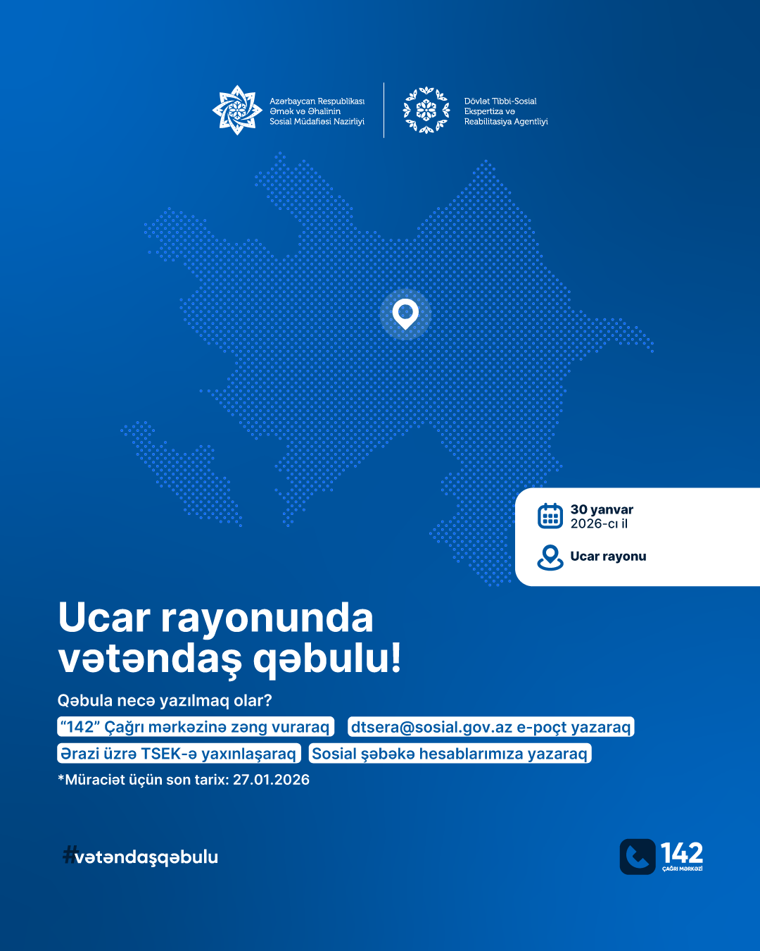 Əlilliyin qiymətləndirilməsi, tibbi-sosial ekspertiza, reabilitasiya və qurumun fəaliyyət istiqamətlərinə dair məsələlərlə bağlı müraciətiniz varsa, 27 yanvar tarixinədək